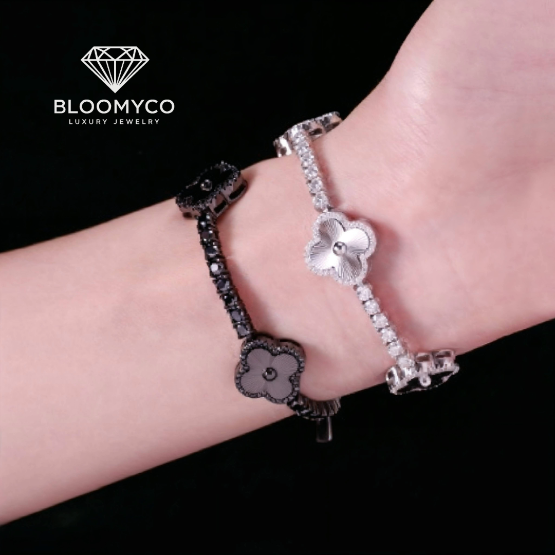 ✨ 3MM Moissanite Four-Leaf Clover Tennis Bracelet – Silver ✨