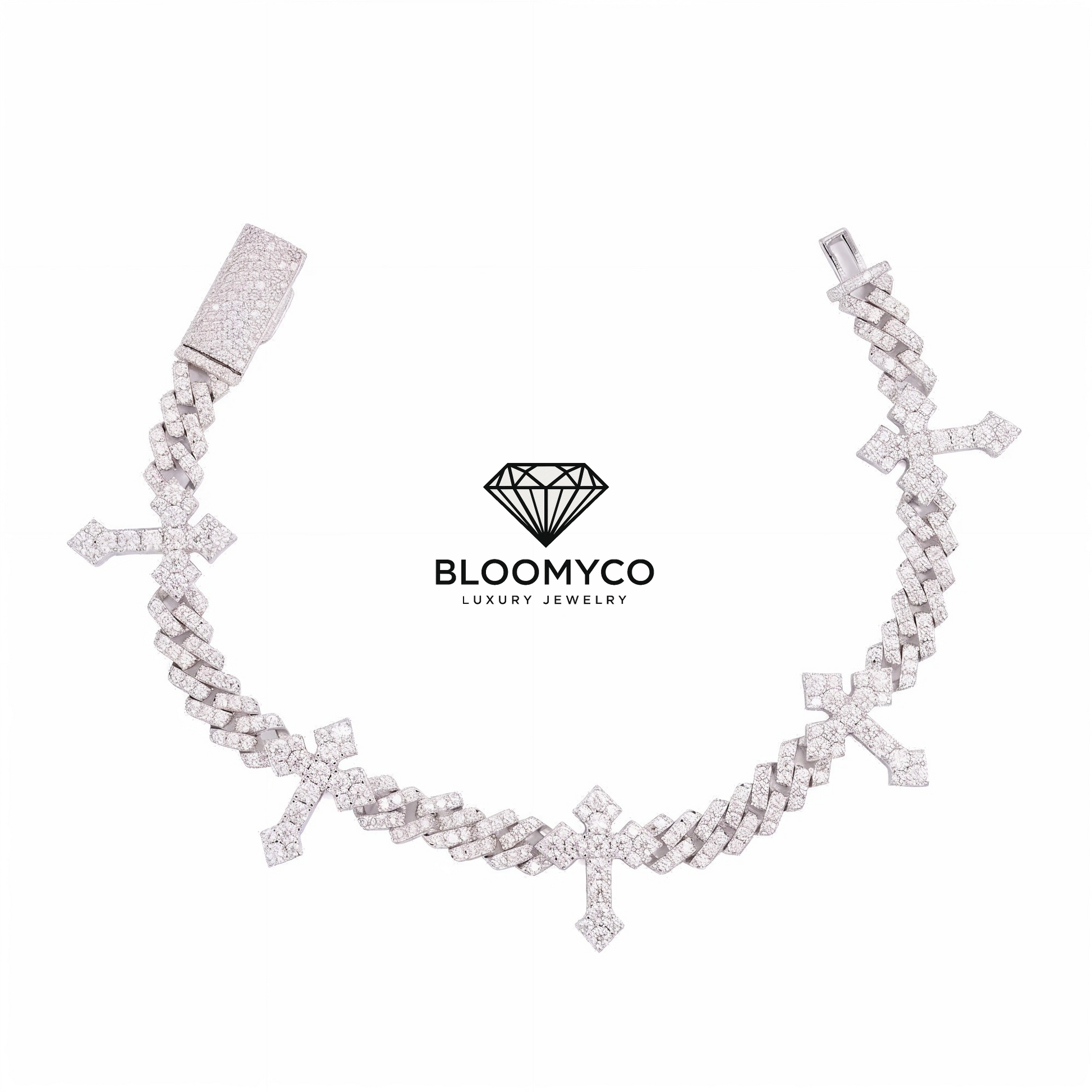 Elevate your wrist game with this 6MM Moissanite Cross Cuban Link Bracelet — a bold statement of luxury and faith. Crafted from solid 925 sterling silver and plated in premium 14K gold, this bracelet blends timeless design with modern brilliance. Each link and cross charm is hand-set with D-color VVS moissanite stones, delivering diamond-level sparkle that catches every angle of light.
