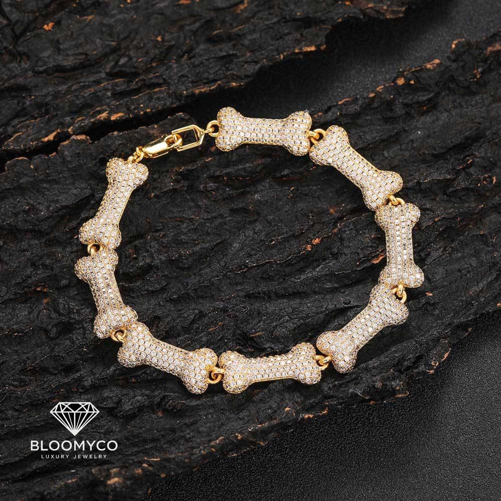 Turn heads with this bold Bone Link Bracelet, crafted from premium plated brass and fully covered in hand-set Cubic Zirconia stones for maximum shine. Each link is shaped like a detailed bone, giving it a unique streetwear edge that blends luxury with attitude.