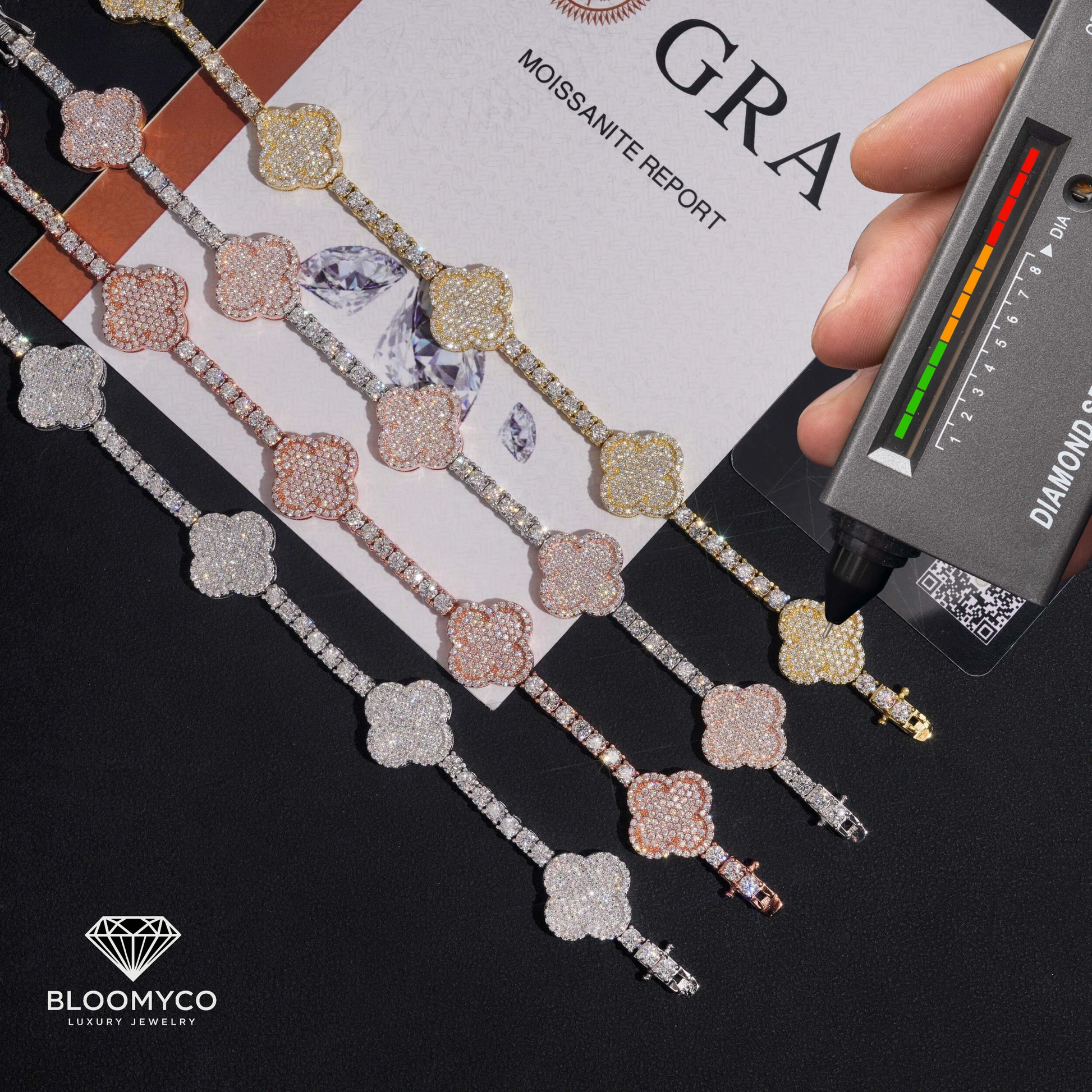 Yes. All BLOOMYCO jewelry is guaranteed to pass the diamond tester. Moissanite and diamonds have almost identical conductive properties, which is what diamond testers rely on to determine the result.